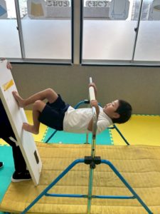 少しずつ少しずつ鉄棒に慣れさせることからはじめています。