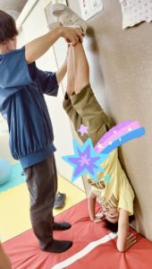 指導員の模倣をしたり、イラストを見て自分がしたい技に挑戦したりしています。得意な技を披露して見せてくれたりもしています‼